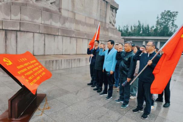 在競技樂趣之外,集團黨總支更以紅色教育為抓手,組織“憶初心”主題活動,引導黨員職工從革命歷史中汲取奮進力量。10月12日上午9:00,黨總支黨員、入黨積極分子及棋牌類競技決賽的部分隊員們共同前往淮海戰役烈士紀念塔,開展沉浸式紅色學習。